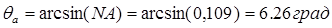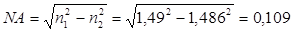 где: n1 =1,49 – показатель преломления сердцевины ОВ; n2 =1,486 – показатель преломления оболочки ОВ. Отсюда найдем значение апертурного угла: