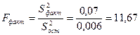 На основе расчетов объемов и числа степеней свободы определим исправленные дисперсии: - Общая - Факторная - Остаточная Дальнейшие расчеты состоят в сопоставлении факторной и остаточной дисперсии. Отношение этих дисперсий получило название фактического критерия Фишера: