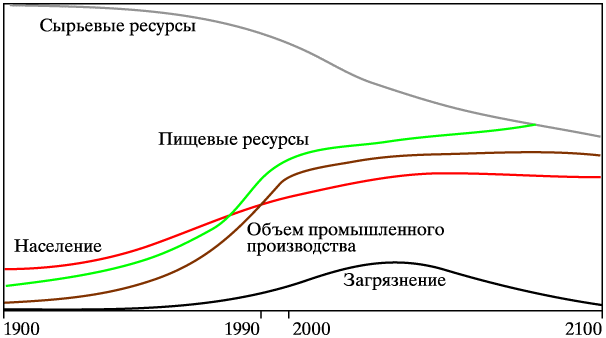 Рисунок 4. Модель «Пределы роста»: модель глобального равновесия.
