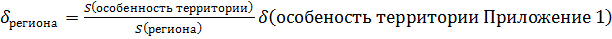 Фактически нам нужно вычислить коэффициент особенности территории по каждому региону, формула будет выглядеть следующим образом: