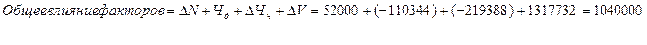 Расчетная формула: N = ОСпр * Рд * Ксм * Псм * BЧ 1-я подстановка: NОСпр = 32 506* 240 * 1, 0 * 7,5 * 0,0026846 = 157 078 тыс. руб. 2-я подстановка: NЧ D = 1 108 604* 1 * 1, 0 * 7,5 * 0,0026846= 22 321 тыс. руб. 3-я подстановка: NКсм = 1 108 604* 241 * 0,05 * 7,5 * 0,0026846= 268 970 тыс. руб. 4-я подстановка: NЧч = 1 108 604* 241 * 1,05 * (-0,5) * 0,0026846= -376 558 тыс. руб. 5-я подстановка: NВч = 1 108 604* 241 * 1,05 * 7,0 * 0,0004930= 968 117 тыс. руб. Общее влияние факторов: + 157078 + 22321 + 268970 - 376558 + 968117 = + 1 039 928 тыс. руб. Таким образом, по сравнению с предыдущим годом объем продаж увеличился на + 1 039 928 тыс. руб. Это увеличение произошло в основном за счет изменения экстенсивного фактора на 882 850 тыс. руб. На фондоотдачу активной части основных производственных средств в свою очередь повлияли следующие факторы: - увеличение количества дней в году, в течение которых активная часть производственных основных средств находилась в рабочем состоянии на 1 день, привело к увеличению фондоотдачи на 22 321 тыс. руб.; - изменение коэффициента сменности на 0,05 привело к увеличению фондоотдачи на + 268 970 тыс. руб.; - уменьшение средней продолжительности смены на - 0,5 часа привело к уменьшению фондоотдачи на - 376 558 тыс. руб.; - изменение объема продукции, приходящийся на 1 тыс. руб. стоимости активной части основных средств за 1 машино-час работы оборудования на + 0,4930 руб. привело к увеличению фондоотдачи на 968 117 тыс. руб. Задание 4 Определим характеристики деятельности организаций. Воспользуемся усредненным вариантом определения участия экстенсивных и интенсивных факторов в выпуске и продаже продукции.