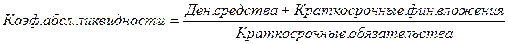 Существуют следующие коэффициенты ликвидности: 1) Коэффициент абсолютной ликвидности: