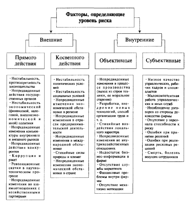 Рис. 1. Система факторов, влияющих на уровень риска [14, с. 27]