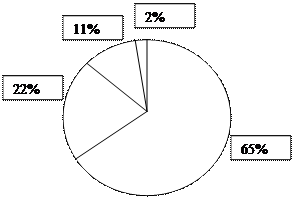 Рис.1 Структура обязательств на 01.01.2010 года. К 2010 году существенно улучшена структура и качество активов. Доля доходоприносящих активов в активах банка увеличилась за 8 месяцев 2008 г. с 68 до 72%. Наибольшую долю в структуре активов занимает ссудная и приравненная к ней задолженность, она выросла с 35 до 45%; доля портфеля ценных бумаг поддерживалась на уровне 26 –28%. На основании информации, полученной из годового отчета банка за 2008 год, приводим структуру банка на 01.01.2010 год.