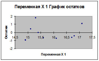 Вывод: Поскольку коэффициент множественной детерминации R2 = 0,71585226, то это свидетельствует, что вариация объема накладных расходов на 72% определяется вариацией объема работ и на 28% вариацией других факторов, которые не вошли в модель. Коэффициент корреляции R=-0,84608053 характеризует слабую связь между этими показателями. Модель не адекватна.