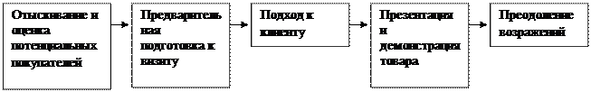 3.2 Процесс продажи Процесс продажи рассматривают как последовательный ряд этапов, каждый из которых должен быть освоен в совершенстве. Этапы представлены в схеме на рис.5 Рис. 5 Основные этапы процесса эффективной продажи