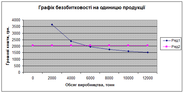 Рис. 1 – Графік беззбитковості всього обсягу виробництва