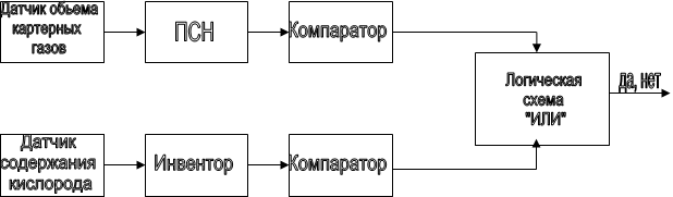 Рис.1 3.2. Устройства принятия решений о наличии нормальной температуры охлаждающей жидкости и нормального давления и температуры масла в системе смазки двигателя. В общем виде эти устройства представляют собой простые цепи, каждая из которых состоит из датчика и компаратора, принцип действия которого описан выше.