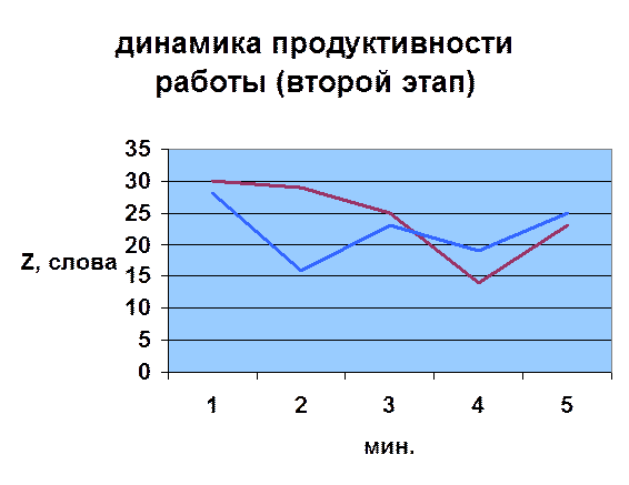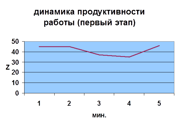 Индивидуальные значения показателя продуктивности работы в первой и во второй сериях выше средних показателей по группе. Можно сказать, что испытуемый имеет высокий показатель точности работы и средний показатель продуктивности работы. Одновременное выполнение другой деятельности снизило показатели и производительности и точности. Когда испытуемый выполнял разнородные задачи, ему было сложнее это делать. Таким образом, испытуемый обладает высоким показателем продуктивности.