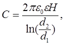 Рис. 3.1 Необходимо вывести функцию преобразования для данного датчика. Емкость цилиндрического конденсатора определяется по следующей формуле: