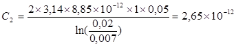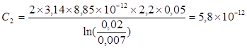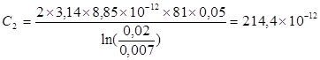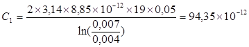 В данном случае имеется две емкости. В первой емкости межэлектродное пространство заполнено пластмассой. Значение ее находится по формуле: