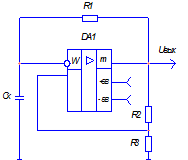 на инвертирующем входе усилителя является выходным напряжением цепочки, образованной емкостью СХ
