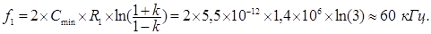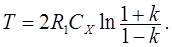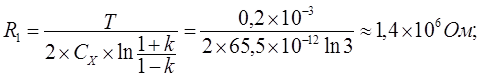 С другой стороны, период находится по формуле (3.12). Необходимо задаться коэффициентом k . Если k взять близким к нулю, то может возникнуть погрешность, связанная с дрейфом нуля. Если же, наоборот, близким к единице, то также возникнет погрешность из-за того, что напряжение U 1 ( t ) будет плавно стремится к значению Е , и не будет четкого перехода. Поэтому целесообразно принять коэффициент k , равным 0,5. Теперь находим значение сопротивления R 1 из выражения (3.12):