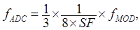 где f ADC – поток данных на выходе АЦП (частота модификации выхода); f MOD =32768 Гц – опорная (тактовая) частота модулятора; SF – десятичное значение содержимого регистра SF. Примеры значений SF и соответствующих им частот (f ADC ) и времени (tADC ) преобразования АЦП показаны в табл. 3.1. Таблица 3.1 Соответствие между значениями SF и частотами преобразования АЦП