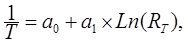 4.1 Математическая модель первичного преобразователя температуры При использовании термисторов важным вопросом, от решения которого существенно зависит точность измерения температуры, является выбор математической модели термистора. Наиболее простой из моделей, используемых для термисторов с отрицательным ТКС, является следующая:
