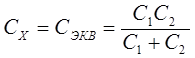 В зависимости от содержания воды в нефти емкость будет изменяться. Эти два конденсатора соединены последовательно, поэтому окончательное значение емкости определяется по формуле: