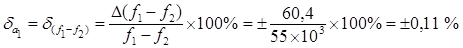 2) Погрешность из-за ошибки определения коэффициентов а1 и а2 при калибровке. Учитывая (5.6) и (5.7), найдем абсолютную погрешность определения частоты: