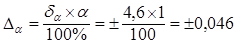 Аналогично, находим значение погрешности для воды (α=1 ).