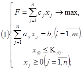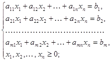 Общая задача линейного программирования – часть ограничений выражается в виде неравенств, часть – в виде уравнений. Кроме того, не ко всем переменным относится условие неотрицательности: