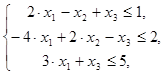 При решении задач линейного программирования 1. Одна из задач неразрешима, а другая имеет целочисленный оптимальный план. Тогда этот план и значение целевой функции на нем и дают решение исходной задачи. 2. Одна из задач неразрешима, а другая имеет оптимальный план, среди компонент которого есть дробные числа. Тогда рассматриваем вторую задачу и в ее оптимальном плане выбираем одну из компонент, значение которой равно дробному числу, и строим две задачи, аналогичные задачам 3. Обе задачи разрешимы. Одна из задач имеет оптимальный целочисленный план, а в оптимальном плане другой задачи есть дробные числа. Тогда вычисляем значения целевой функции на этих планах и сравниваем их между собой. Если на целочисленном оптимальном плане значение целевой функции больше или равно ее значению на плане, среди компонент которого есть дробные числа, то данный целочисленный план является оптимальным для исходной задачи и он вместе со значением целевой функции на нем дает исходное решение. Если же значение целевой функции больше на плане, среди компонент которого есть дробные числа, то следует взять одно из таких чисел и для задачи, план которой рассматривается, необходимо построить две задачи, аналогичные 4. Обе задачи разрешимы, и среди оптимальных планов обеих задач есть дробные числа. Тогда вычисляем значение целевой функции на данных оптимальных планах и рассматриваем ту из задач, для которой значение целевой функции является наибольшим. В оптимальном плане этой задачи выбираем одну из компонент, значение которой является дробным числом, и строим две задачи, аналогичные Итак, процесс нахождения решения задачи целочисленного программирования (2.1.1)-(2.1.4) методом ветвей и границ включает следующие основные этапы: 1. Находят решение задачи целочисленного программирования (2.1.1)-(2.1.3). 2. Составляют дополнительные ограничения для одной из переменных, значение которой в оптимальном плане задачи (2.1.1)-(2.1.3) является дробным числом. 3. Находят решение задач 4. В случае необходимости составляют дополнительные ограничения для переменной, значение которой является дробным, формулируют задачи, аналогичные задачам 2.2 Пример решения задачи целочисленного программирования Пример 2.2.1