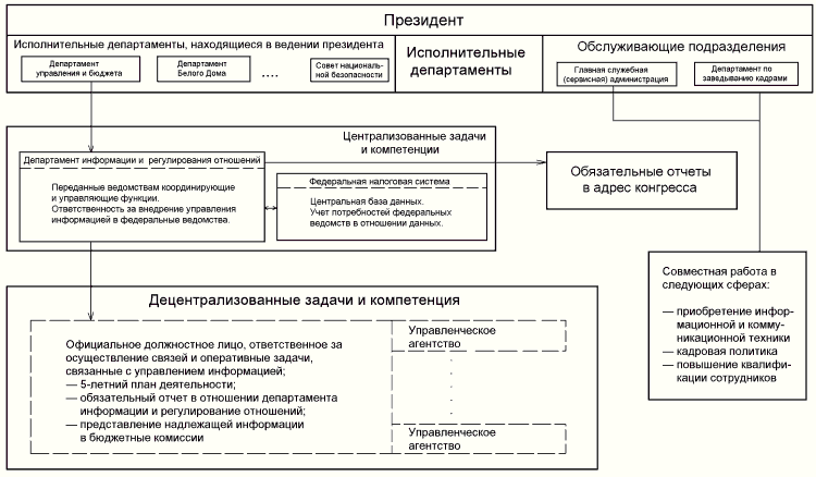 Стандарт, предъявляя жесткие требования к унификации и стандартизации элементов оформления документации, в значительной степени облегчает создание типовых, унифицированных и единых процессов как традиционного, так и автоматизированного обмена информацией и документацией между ведомствами и организациями. Для обеспечения автоматизации документооборота исключительно важное значение имеет также ведение и постоянное обновление стандартов, общероссийских классификаторов, в т. ч. форм управленческой документации на федеральном уровне, и соответствующая нормативно-методическая регламентация табелей и альбомов форм документации на уровне ведомств, предприятий и организаций. Согласование и сопряжение этих систем и документов должны стать предметом самого пристального внимания, так как они существенно влияют на возможности и эффективность автоматизированного обмена информацией. Все более возрастающее значение в последнее время приобретают также задачи организации упорядочения и регламентации государственного и ведомственного хранения информации и документации на нетрадиционных носителях, которые до сих пор решаются на эмпирическом уровне в отдельных организациях, и практически не регулируются общегосударственными нормами. Прежде всего, речь идет о так называемом “электронном документообороте”, неурегулированность которого соответствующими правовыми актами и технико-технологическими регламентами вызывает все большую озабоченность у специалистов-практиков и общественную неудовлетворенность низким уровнем теоретической и методической проработки*1. По нашему мнению, комплекс проблем по изучению электронного документа заслуживает выделения в особую научно-исследовательскую программу (про-ект) на общегосударственном уровне. ----- *1 См.: Копылов В.А. Информация как объект правового регулирования. - НТИ, 1996, № 8, С. 2-3. В России все большее распространение получает информационный менеджмент. Формально этот термин является “калькой” с англоязычного термина “управление информацией”. Фактически его использование предполагает создание единой инфраструктуры организации на базе массивов документов и информации (информационных ресурсов), информационных технологий, средств коммуникации и квалифицированных кадров с целью обеспечения с наименьшими затратами эффективного документационного (информационного) обеспечения процессов управления. Объективные условия для перехода к применению методологии информационного менеджмента, включая методики оргпроектирования в современных российских организациях к настоящему времени уже созданы. Надо суметь эффективно воспользоваться ими.
