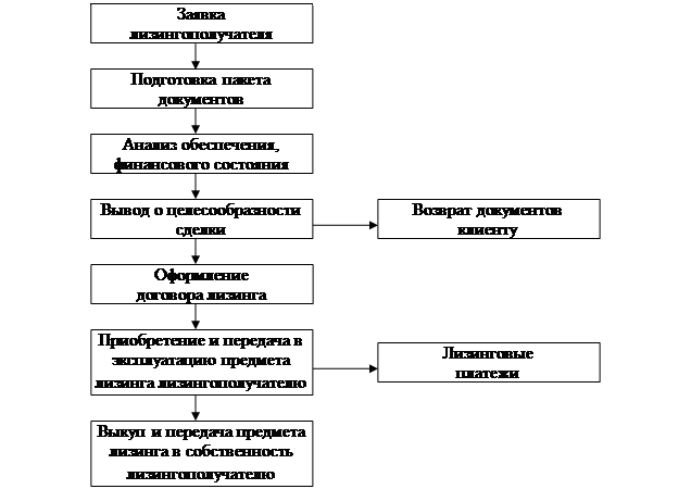 Прямой лизинг – вид лизинга, при котором функции поставщика и лизингодателя выполняет одно лицо, то есть производитель сам, без посредников, сдаёт объект в лизинг. Косвенный лизинг – вид лизинга, при котором между поставщиком и получателем присутствует посредник – лизингодатель. В основе большинства сделок лежит процедура косвенного лизинга. Возвратный лизинг – вид лизинга, при котором функции поставщика и получателя совмещаются, то есть предприятие-собственник продаёт объект лизингодателю и тут же берёт этот объект обратно в лизинг. В результате лизингодатель как бы даёт ссуду под залог объекта первоначальному собственнику. Сублизинг – это «вид поднайма предмета лизинга, при котором лизингополучатель по договору лизинга передаёт третьим лицам во владение и в пользование за плату и на срок в соответствии с условиями договора сублизинга имущество, полученное ранее от лизингодателя по договору лизинга и составляющее предмет лизинга». При передаче имущества в сублизинг обязательным является согласие лизингодателя в письменной форме. При лизинге недвижимости лизингодатель приобретает или строит по поручению будущего лизингополучателя недвижимость и передаёт ему для использования в коммерческих целях. Лизинг движимого имущества предполагает в качестве объектов лизинга станки и оборудование, транспортные средства, компьютеры. Оперативный лизинг – вид лизинга, при котором объект передаётся лизингополучателю на срок, значительно меньший нормативного срока службы объекта. Выделение оперативного лизинга в отдельный вид лизинга в условиях России оценивается неоднозначно. В гражданском законодательстве нет определения оперативного лизинга. В последней редакции Федерального закона «О финансовой аренде (лизинге)» оперативный лизинг исключён как вид лизинга. Оперативный лизинг имеет большое сходство с простыми арендными отношениями и регулируется общими нормами ГК РФ об аренде, не относящимися к лизингу. Револьверный лизинг – вид лизинга, при котором лизингополучателю предоставляется право по истечении определённого срока обменять имущество, полученное по лизингу, на другое, необходимое ему. Возобновляемый лизинг предполагает периодическую замену имущества по заявке лизингополучателя новыми, более совершенными образцами. Левередж-лизинг – вид финансового лизинга, особенность которого состоит в объединении нескольких кредитных организаций для финансирования крупных лизинговых проектов. Лизинг в пакете – это вид лизинга, предусматривающий комплексную систему технического обслуживания, ремонта, страхования, предлагаемую лизингодателем. Внутренний лизинг предполагает лизинговые сделки между резидентами одной страны. Фиктивный лизинг носит спекулятивный характер и рассчитан на использование налоговых и прочих льгот, действующих в стране, при этом по своей экономической сущности он не является лизинговой сделкой, а скорее всего представляет собой сделку купли-продажи имущества в рассрочку. Основные этапы заключения лизинговой сделки. Лизинговая деятельность отличается сложной организацией. Это обусловлено большим числом участников, спецификой выполняемых ими функций, особенностями финансовых процессов, осуществляемых при лизинговой сделке. Одним из основных условий высокой эффективнос