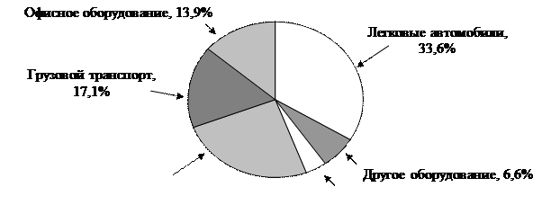 Рис. 4. Основные этапы развития лизинговой индустрии. Касаясь объёмов лизинговых операций в мировом масштабе, необходимо отметить высокую концентрацию объёмов среди нескольких стран-лидеров. Так, основной объём лизинговых операций сосредоточен в шести странах: США, Японии, Великобритании, Италии, Германии, Франции, на долю которых приходится около 80% лизинговых операций в мире. Следует также отметить, что рынки лизинговых услуг большинства стран контролируются банками (непосредственным участием или посредством дочерней лизинговой компании). Так, в 14 странах из 23 доля банковского сектора рынка лизинговых услуг превышает 60%. Структура операций по лизингу имущества представлена на рис.5. Наибольший удельный вес приходится на лизинг легкового автотранспорта. Сделки с легковым автотранспортом имеют постоянную нишу на рынке лизинговых услуг, колеблясь в диапазоне 33-35%. Более 50% всех сделок приходится на автотранспорт в целом (и легковой, и грузовой).