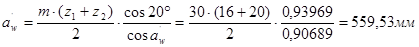 Округляем межосевое расстояние до aw = 560 мм Уточняем угол зацепления