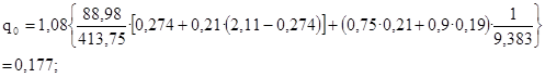 где Р - наружный периметр здания, м; P=88,98 м S - площадь здания по наружному обмеру, м2 ; S=413,75м2 Н - высота отапливаемой части здания, м; Н=9,383м. КОК , КНС , КПЛ , КПТ - коэффициенты теплопередачи соответственно окон, стен, перекрытий над подвалом и потолком, Вт /м2 ·°С. r0 - коэффициент остекления (отношение суммарной площади окон и балконных дверей к суммарной площади вертикальных наружных ограждений; r0 =0,21 nПЛ , nПТ - коэффициенты в формуле
