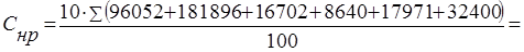 Амортизационные отчисления на полное восстановление подвижного состава (Апв), для выбранного автомобиля рассчитывается по формуле 3.15, Апв = (Н2 ∙ Сбал∙ Lобщ) /(100 ∙ 1000), (3.15) при этом Н2 – норма амортизации на полное восстановление для автомобиля-тягача с полуприцепом составляет 0,45 % от балансовой стоимости автомобиля на 1000 км пробега; Сбал - балансовая стоимость автомобиля (не нового, а приобретенного с определенным сроком эксплуатации), составляет примерно 1500000 тг. Апв = (0,45 ∙1500000 ∙4800) /(100 ∙ 1000)=32400 тг, Общая сумма накладных расходов Снр возьмем в размере 10% от суммы переменных и условно-постоянных затрат на перевозку груза по формуле 3.16: