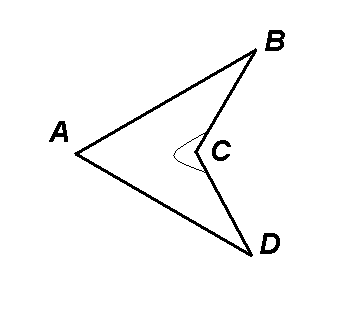 Приклад. На малюнку 2 зафарбована внутрішня область чотирикутника, тобто це множина усіх точок, які знаходяться всередині чотирикутника. Означення. Зовнішню область - це множина усіх точок, які знаходяться за межами чотирикутника, тобто необмежені сторонами чотирикутника. Приклад. На малюнку 2 незафарбована зовнішня область чотирикутника, тобто це множина усіх точок, які знаходяться за межами чотирикутника. Запам'ятайте: Об'єднання чотирикутника і його внутрішньої області називають також чотирикутником. 3 Саме такі чотирикутники мають на увазі, коли говорять про площі чотирикутників. Якщо не зрозуміло, про які чотирикутники йдеться, тоді їх розрізняють: «чотирикутник як контур» і «чотирикутник як частина площини». Означення. Внутрішніми кутами чотирикутника АВСD називають кути, що утворені сусідніми сторонами, тобто, обмежують внутрішню область чотирикутника. Позначають кути чотирикутника: ÐDАВ, ÐАВС, ÐВСD і ÐСDА, або коротко внутрішні кути позначають ще так: ÐА, Ð В, Ð С, Ð D. Означення. Внутрішні кути чотирикутника називають протилежними кутами чи сусідніми кутами залежно під того, протилежні чи сусідні їх вершини. Запам'ятайте: Один з кутів чотирикутника може бути більшим від розгорнутого, тобто більшим від 180°. Мал. 3