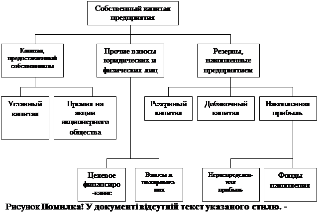 Собственные привлеченные финансовые ресурсы – это базовая часть всех финансовых ресурсов фирмы, которая базируется на момент ее создания и находится в ее распоряжении на всем протяжении ее жизни. Эту часть финансовых ресурсов принято называть уставным фондом или уставным капиталом фирмы. В зависимости от организационно-правовой формы предприятия его уставной капитал формируется за счет выпуска и последующей продажи акций (обыкновенных, привилегированных или их комбинации), вложений в уставной капитал паев, долей и т.д. За время жизни фирмы ее уставной капитал может дробиться, уменьшаться и увеличиваться, в том числе за счет части внутренних финансовых ресурсов фирмы. Структура собственного капитала предприятия представлена на рисунке 1. Источниками собственных финансовых ресурсов являются: - уставный капитал (средства от продажи акций и паевые взносы участников); - резервы, накопленные предприятием; - прочие взносы юридических и физических лиц (целевое финансирование, пожертвования, благотворительные взносы и др.).