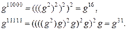 (рівне 16 у десятковій системі), а максимальним – число 11111 (рівне 31 у десятковій системі). Тоді експоненціювання елемента