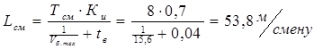 где, nдв - частота вращения бурового става,мин-1; Пб - показатель буримости породы; D - диаметр шарошечного долота,м; Nпод - паспортное усилие подачи бурового станка,Н. 3. Определяем сменную производительность станка: