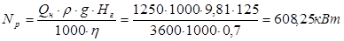 где, Нг - геодезическая высота напора воды(м). Из этого условия принимаю 2 насоса ЦНС-1250-140 (один в работе и один в резерве). Расчетная мощность электродвигателя: