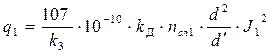 При J2 = 3,46 МА/м2 и b = 5,6 мм по графикам рис. 5, а находим q