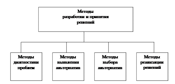 1.3 Принятие решений в условиях риска. Классификация методов разработки и принятия решений основывается на предположении, что процесс управления объектом состоит из совокупности процессов принятия решений и их реализации. Выделяют следующие методы разработки и принятия решений: диагностика проблем, разработка альтернатив (способов действия по достижению цели), выбора альтернатив и выполнения (реализации) решения.