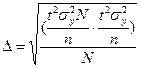 де n – обсяг вибірки; N – обсяг генеральної сукупності. Обсяг вибірки повинен бути достатнім для отримання достовірних висновків про явище, що вивчається. У зв'язку з цим в курсовій роботі слід визначити, яким повинен бути обсяг вибірки для проведення дослідження. З цією метою розраховуємо мінімальний обсяг вибірки, необхідний для оцінки генеральної середньої результативного показника з 5-процентною помилкою на рівні довірчої вірогідності 0,95. Розрахунок виконуємо по формулі для безповторної власно-випадкової вибірки: