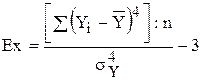 (якщо Ка >0, то скошеність правобічна, якщо Ка <0 – лівостороння; якщо Ка =0, то розподіл симетричний); Скошеність правобічна, оскільки Ка = 0,438. - ексцес