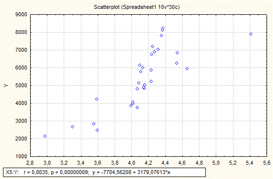 Рис. 3.4 - Кореляційне поле, яке зображує зв’язок результативної змінної та факторної змінної X4.