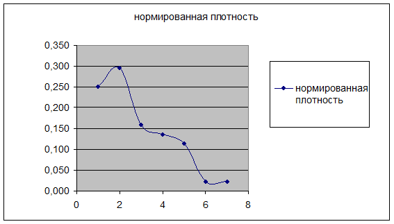 Накопленная плотность число наблюдений для интервала с накоплением. Значение плотности показывает число наблюдений, значение которых соответствует интервалу. Функция плотности определяется как значение плотности поделенное на число разговоров. На рис.1 представлен график нормированной плотности.