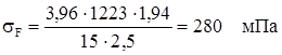 Коэффициент формы зуба УF = 3,96 ( при Z = 25 ) Коэффициент нагрузки КF = КF b × КF v = 1,04 × 1,28 = 1,33 КF