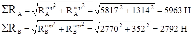 Проверка: -1314+2482-1520+352=0 Определяем суммарные реакции в опорах