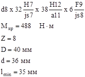 Оставляем подшипник как на базовой модели. 2.10 Проверочный расчет шлицевых соединений Шлицевые соединения проверяются на смятие по формуле: