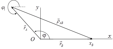 Так как закон плоскопараллельного движения твердого тела можно определить по двум любым точкам этого тела, в качестве базовых точек, при составлении уравнений геометрических связей, примем точки B и в .
