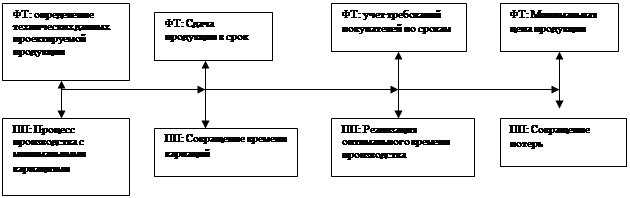 Рис.1 Аксиоматическое проектирование в ТQM 1.3 Развитие системы управления качеством в России Идеология системы управления качества в России до сих пор испытывает определенные трудности при внедрении. Если спроектировать концептуальную основу стандартов ISO серии 9000: 2000 на российский менеджмент, то выявятся следующие особенные моменты: - в силу бедности и непривередливости, воспитанной в советские времена, российские розничные покупатели чаще всего потребителями не являются, так как свои потребности ими не осознаны и не сформулированы. Обычно они стремятся покупать не качественный товар, а дешевый. Россияне же, которые за короткий срок смогли стать богатыми, чаще всего выбирают товар не качественный, а дорогой. Лишь россияне среднего достатка все в большей степени стремятся к сочетанию качественного и дорогого. Поэтому они и становятся главными розничными потребителями, на которые должны ориентироваться отечественные потребители. Профессиональных потребителей, способных своевременно оплачивать свои покупки, в России немного. Большинство предприятий и организаций, не имея возможности расплачиваться с поставщиками переходят на различные формы обмена – бартер, взаимозачет и т.д. Поэтому российским бизнесменам необходимо строить системы менеджмента качества, ориентируясь не на мифических, а на реальных потребителях; - в России традиционно любят не лидеров и начальников, а вождей. Лишь недавно стало формироваться понимание того, что национальное достояние страны – это не только нефть, уголь и золото, но и лидеры – люди способные брать на себя ответственность, видеть будущее и вести за собой других. Формируется и понимание того, что если россияне хотят иметь лидеров, то они должны перестать быть рабами; - в менеджменте вовлеченность достигается путем доверия к работникам и делегирования им необходимых полномочий, разъяснения миссии, целей и задач компании, а также создания нормальных условий для работы. Необходима система мотивации, в соответствии с которой труд вознаграждается, причем лучше всего вознаграждается коллективный результат, при достижении которого видна доля индивидуальной работы; - для освоения на российских предприятиях процессного подхода можно и нужно должным образом использовать опыт, накопленный в военных отраслях промышленности, где в соответствии с механизмом военной приемки представители заказчика (а не государственные чиновники) сопровождают разработку и изготовление изделия с первого до последнего шага. Однако использования опыта военной приемки явно недостаточно для необходимого обновления российской промышленности. Ведь процессный подход, свойственный военной приемке, навязывается заказчиком. А он должен стать результатом реализации внутренней потребности компании повысить эффективность своей деятельности. Поэтому для российских предприятий и организаций (постсоветских и созданных в последнее время) более актуален сейчас реинжиниринг - перепроектирование используемых процессов; - работники организаций должны не только создавать и использовать, развивать и совершенствовать системы, способные выявлять и устранять причины возникающих проблем, но и непрерывно улучшать себя. Реализация такого подхода к менеджменту в российских предприятиях – проблема весьма актуальная и 