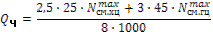 Q ч. = (2,5 ∙ 25 ∙ 2220 + 3 ∙ 45 ∙ 1480) / (8 ∙ 1000) = 42,32 (м3 /ч.);