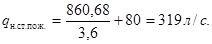 где qг = 812 м3 /час по таблице 1; qп = 35 л/с.