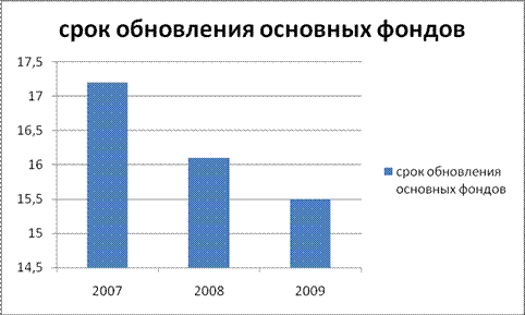 Рисуно 5-Обновление основных фондов Как видно из рисунка 4и 5 факт систематического снижения срока обновления основных фондов является положительным,который значительно сократился за анализируемый период .