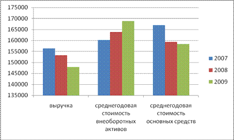 Рисунок 6- Изменения среднегодовой стоимости Из рисунка видно,что при снижение выручки повышается среднегодовая стоимость внеоборотных активов и исходя из этого среднегодовая стоимость основных средст снижается.
